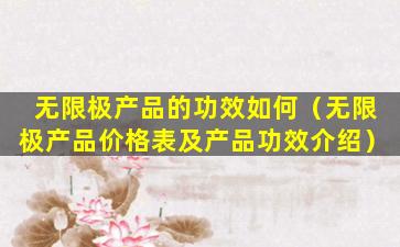 无限极(Infinitus)是一家中国的健康产品公司,隶属于李锦记健康产品集团。无限极提供多种健康食品、个人护理产品和家居护理产品。以下是一些无限极产品的价格表及产品功效介绍,但请注意,价格可能会因地区、促销活动和购买渠道的不同而有所变化。