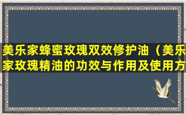 美乐家(Melvita)是一个法国的有机护肤品牌,以其使用天然成分和环保理念而闻名。关于“美乐家蜂蜜玫瑰双效修护油”,这可能是该品牌的一款产品,结合了蜂蜜和玫瑰的成分,旨在提供双重修护效果。