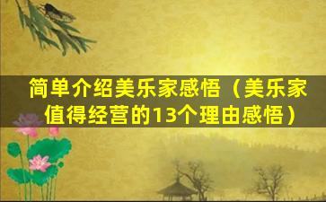 对于美乐家的感悟,不同的人可能有不同的体验和看法。以下是一些可能的感悟: