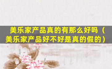 关于“美乐家产品真的有那么好吗”这个问题,答案可能因人而异,因为每个人的体验和偏好不同。以下是一些关于美乐家产品的普遍观点: