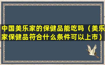 在中国,任何保健品上市都需要符合国家相关法律法规的要求。美乐家保健品如果要在中国上市,需要满足以下条件: