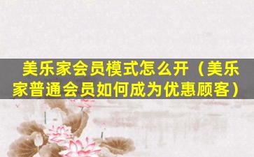 在中国,成为美乐家会员可能需要遵循以下步骤: