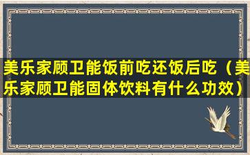 美乐家(Melaleuca)是一家美国的直销公司,主要销售健康、个人护理、家庭清洁等产品。如果您提到的“顾卫能”是指美乐家的一款产品,那么关于饭前吃还是饭后吃的问题,通常需要根据产品的具体说明来决定。