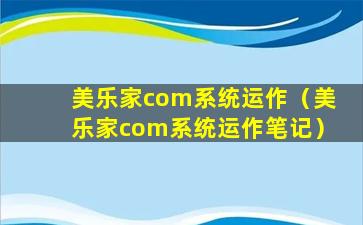 如果你是在寻找关于如何运作美乐家com系统的笔记或者指南,以下是一些基本的步骤和建议: