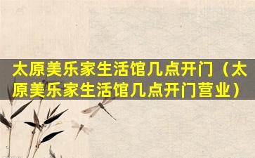 关于太原美乐家生活馆的开门时间,由于我无法提供实时信息,建议您直接联系当地的美乐家生活馆或访问其官方网站获取最准确的信息。通常,零售店铺的营业时间可能会根据季节、节假日或特殊情况有所调整。