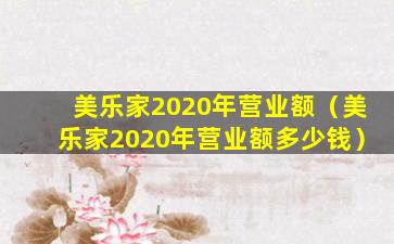 如果您需要最新的财务数据,建议直接联系美乐家或查看其官方发布的最新财务报告。请注意,由于我无法访问实时数据,因此无法提供确切的2020年营业额数字。