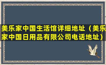 如果您需要查询美乐家中国生活馆的详细地址,建议您采取以下步骤: