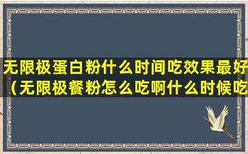 无限极餐粉是一种营养补充品,通常用于辅助日常饮食,提供额外的营养支持。关于无限极餐粉的食用方法和时间,建议您参考产品包装上的说明或咨询销售商或生产商以获取最准确的信息。