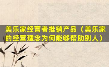 美乐家的经营理念之所以能够帮助别人,主要体现在以下几个方面: