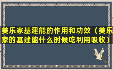 由于“基建能”不是一个明确的产品名称,我无法提供具体的作用和功效信息。如果您有美乐家产品的具体名称或更多信息,我可以尝试提供更详细的帮助。