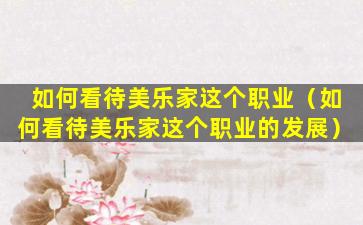 对于如何看待美乐家这个职业,可以从以下几个方面来考虑: