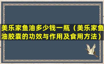 请注意,以上信息是基于一般情况提供的,具体产品的使用说明可能有所不同。务必阅读并遵循你所购买的美乐家鱼油产品的具体说明。