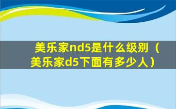 请注意,具体的级别含义和要求可能会随着时间和公司政策的变化而变化,因此最准确的信息应该直接从美乐家公司或其官方渠道获取。如果您想了解更多关于美乐家ND5级别的信息,建议联系美乐家的官方客服或查阅其官方网站上的相关资料。
