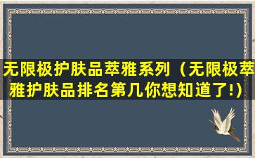 无限极(Infinitus)是中国的一个健康产品品牌,隶属于香港李锦记集团。萃雅系列是无限极推出的一个化妆品系列,主要针对肌肤护理。关于产品是否好用,这通常取决于个人的肤质、使用习惯以及对产品的个人偏好。