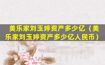 截至我的知识更新日期(2023年),关于“美乐家刘玉婷”的资产信息并不是公开透明的信息,因此无法提供确切的资产数额。美乐家是一家以家居用品为主的公司,如果刘玉婷是该公司的创始人或高管,她的资产可能会与公司的业绩和市场表现有关。