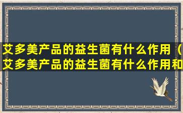 请注意,不同类型的益生菌可能具有不同的功效,而且每个人的身体反应也可能不同。在使用任何益生菌补充品之前,最好咨询医生或营养专家,以确保它适合您的个人健康状况。艾多美产品的具体成分和效果可能因产品而异,因此建议查看具体产品的标签或官方说明以获取准确信息。