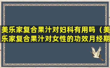 美乐家复合果汁可能有助于提供营养支持,但它不是治疗妇科问题的替代品。对于任何健康问题,包括妇科问题,都应该寻求专业医疗意见。
