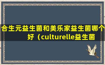 “Culturelle”和“合生元”都是知名的益生菌品牌,它们各自有不同的产品线和特点。选择哪个品牌更好,取决于您的个人需求、健康状况以及对产品的偏好。以下是两个品牌的一些基本信息,以帮助您做出决定: