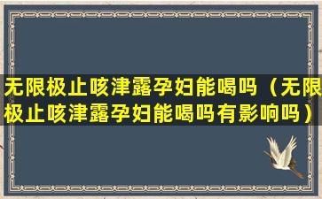 无限极止咳津露的成分可能包括多种中草药,这些成分的安全性对于孕妇来说可能并不完全清楚。因此,孕妇在没有医生指导的情况下,不应自行服用此类药物。