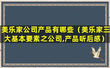 美乐家(Melaleuca)是一家以健康和环保产品为主的公司,其三大基本要素通常指的是公司、产品和市场。以下是对这三个要素的听后感: