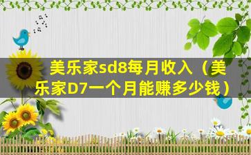 关于“美乐家sd8每月收入”,这可能是指美乐家销售代表在达到某个级别(如SD8,即Senior Director 8)后的预期月收入。具体的收入数字会因个人业绩、市场情况、团队规模等多种因素而异,因此很难提供一个确切的数字。