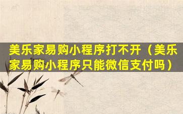 关于您提到的“美乐家易购小程序打不开”的问题,这可能是由于多种原因造成的。以下是一些可能的解决方案: