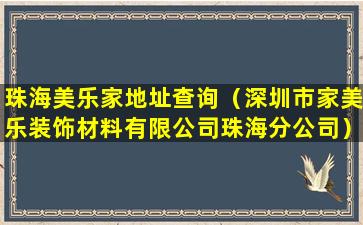 如果您需要了解更多关于深圳市家美乐装饰材料有限公司珠海分公司的具体信息,如公司地址、联系方式、业务范围等,建议直接查询该公司的官方网站或通过工商行政管理部门获取最新的企业信息。在中国,企业信息可以通过国家企业信用信息公示系统进行查询。