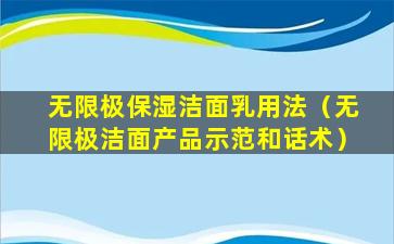 无限极(Infinitus)是一家中国的健康产品公司,隶属于李锦记健康产品集团。该公司提供多种健康和美容产品,包括洁面产品。以下是一个关于无限极洁面产品的示范和话术示例,用于销售或推广活动: