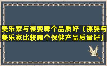 关于哪个品牌的品质更好,这取决于您所关注的具体产品类别和个人偏好。如果您在寻找健康和保健产品,美乐家可能是一个值得考虑的选择。如果您需要婴幼儿护理产品,葆婴可能更适合您的需求。
