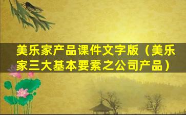 如果您是美乐家的会员或客户,并且正在寻找产品课件或相关教育材料,我建议您直接联系美乐家的官方渠道或您的个人推荐人以获取这些信息。通常,这些材料会通过官方网站、会员门户或通过公司的营销和培训活动提供。