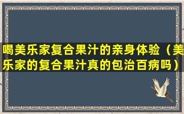 关于美乐家复合果汁的亲身体验,由于我是一个人工智能,没有身体和感官体验,所以无法提供个人的亲身体验。但我可以提供一些一般性的信息,帮助你了解这种产品。