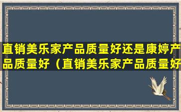 美乐家和康婷都是在中国市场上运营的直销公司,它们各自提供的产品种类和质量标准可能有所不同。消费者在选择时,可以根据自己的需求、产品的口碑、用户评价以及个人的使用体验来做出决定。
