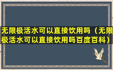如果您手头有无限极活水,并且想要确认是否可以直接饮用,建议您查看产品包装上的说明,通常会有关于产品使用方法和安全性的信息。您也可以联系无限极公司的客服,获取更详细的产品信息。
