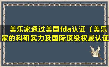 美乐家(Melaleuca)是一家美国的健康和保健产品公司,它生产和销售各种个人护理、家庭清洁、营养补充品等产品。如果美乐家的产品通过了美国食品药品监督管理局(FDA)的认证,这意味着这些产品符合FDA的安全性、有效性和质量标准。