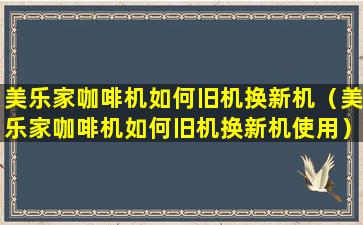 很抱歉,我无法提供具体的美乐家咖啡机旧机换新机的视频,因为我的知识库中没有包含此类视频内容。不过,通常来说,品牌可能会提供以旧换新的服务,具体步骤可能包括: