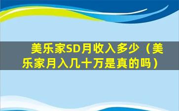 美乐家(Melaleuca)是一家美国的直销公司,主要销售健康、个人护理、家庭清洁等产品。关于美乐家SD(Senior Director)级别的月收入,这个数字会因个人销售业绩、团队规模、市场情况等因素而有很大差异。直销行业的收入通常与个人的努力和能力紧密相关,因此很难给出一个具体的数字。