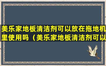 美乐家地板清洁剂是否可以放在拖地机里使用,以及是否安全,主要取决于以下几个因素: