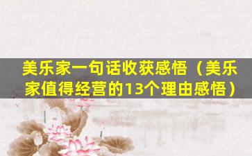 "美乐家一句话收获感悟" 的写作可以围绕个人在使用美乐家产品或服务后的体验和感受来展开。以下是一个示例: