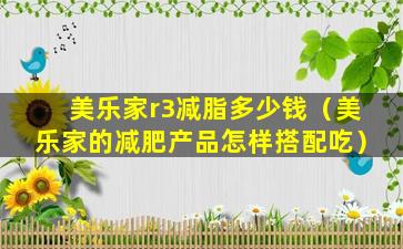 美乐家(Melaleuca)是一家美国的直销公司,提供各种健康、个人护理和家庭清洁产品。关于“r3减脂”产品,这可能是指美乐家的一款名为“RevitaLine”或“Replenex”的产品,这些产品旨在帮助支持健康的体重管理和关节健康。