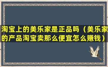 淘宝是中国最大的在线购物平台之一,上面有大量的商家和商品。关于“美乐家”产品是否为正品,这取决于具体的卖家。淘宝上的商品有正品也有非正品,因此购买时需要谨慎。