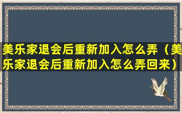 - 美乐家可能会有一些特定的规定,比如退会后需要等待一段时间才能重新加入。
