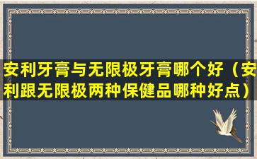 安利(Amway)和无限极(Infinitus)都是知名的直销公司,它们都生产并销售各种个人护理和健康产品,包括牙膏。关于“哪个好”的问题,这很大程度上取决于个人的偏好、需求以及对产品的评价。以下是一些比较这两个品牌牙膏的一般性建议: