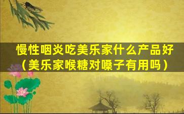 美乐家(Melaleuca)是一家美国的健康产品公司,提供多种健康和家庭护理产品。如果您想了解美乐家的产品是否适合治疗慢性咽炎,建议您咨询专业的医疗人员或直接联系美乐家的客服以获取更准确的产品信息。