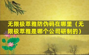 无限极(Infinitus)是一家中国的健康产品公司,其产品线包括了萃雅系列。为了确保消费者购买到正品,无限极为其产品设置了防伪码。防伪码通常位于产品的包装上,可以通过以下几种方式找到: