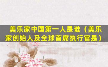 截至我的知识更新日期(2023年),美乐家(Melaleuca)是一家美国的直销公司,主要销售健康、个人护理、家庭护理和营养补充品等产品。美乐家在中国也有业务,但是关于“美乐家中国第一人”的具体信息并不明确,因为这个称号可能指的是在中国市场最早加入美乐家的个人,或者是业绩最突出的个人。