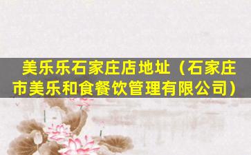 截至我的知识更新日期(2023年),美乐乐是一家中国的家居用品零售商,提供家具、家居装饰品等产品。由于商家信息可能会发生变化,包括店铺地址、营业状态等,我无法提供最新的美乐乐石家庄店地址。