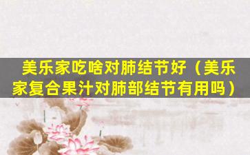 如果您或您认识的人有肺部结节,建议咨询医生或专业的医疗人员,以获得适当的诊断和治疗建议。营养补充品如美乐家复合果汁可以作为健康生活方式的一部分,但它们不应替代专业的医疗建议或治疗。