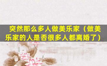 关于“做美乐家的人是否很多人都离婚了”的问题,首先需要明确“美乐家”是指什么。如果是指一个特定的社交群体、职业群体或者是一个特定的公司,那么这个问题的答案将取决于该群体或公司的具体情况。
