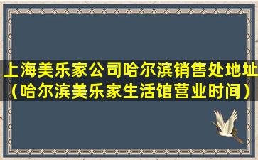 如果您想了解美乐家在哈尔滨的销售处或服务中心的地址,建议您直接联系美乐家的官方客服或通过其官方网站获取最新信息。通常,美乐家的会员可以通过会员账户或会员服务热线来获取这些信息。