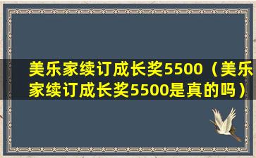 关于“美乐家续订成长奖5500”的信息,我无法提供确切的答案,因为这取决于具体的促销活动和条款。通常,这类奖励可能是某些公司为了鼓励客户续订服务或产品而提供的促销手段。